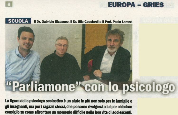 La figura dello Psicologo Scolastico ed il progetto "Parliamone": intervista apparsa sul quindicinale "Qui Bolzano" del 1.6.2017